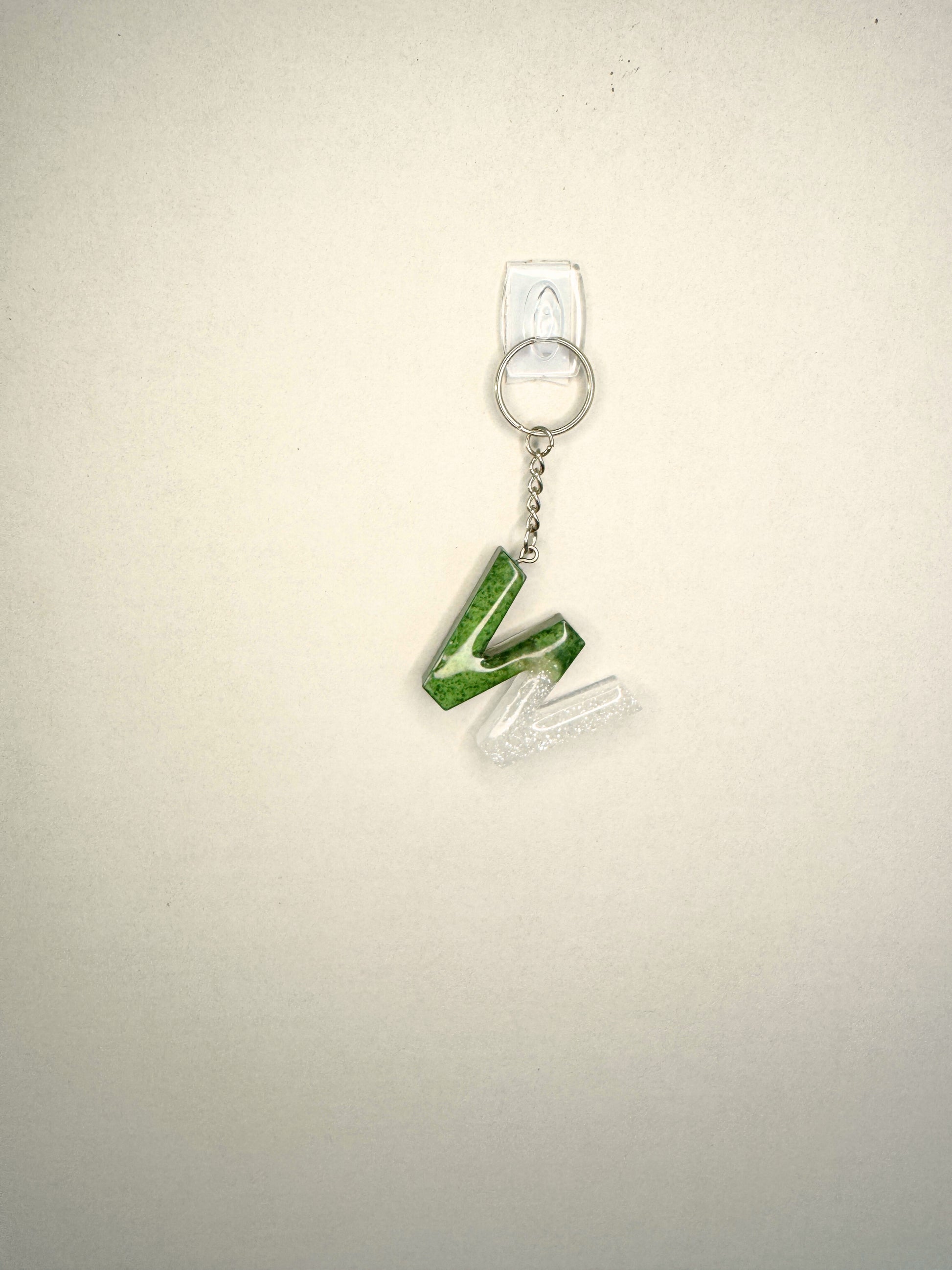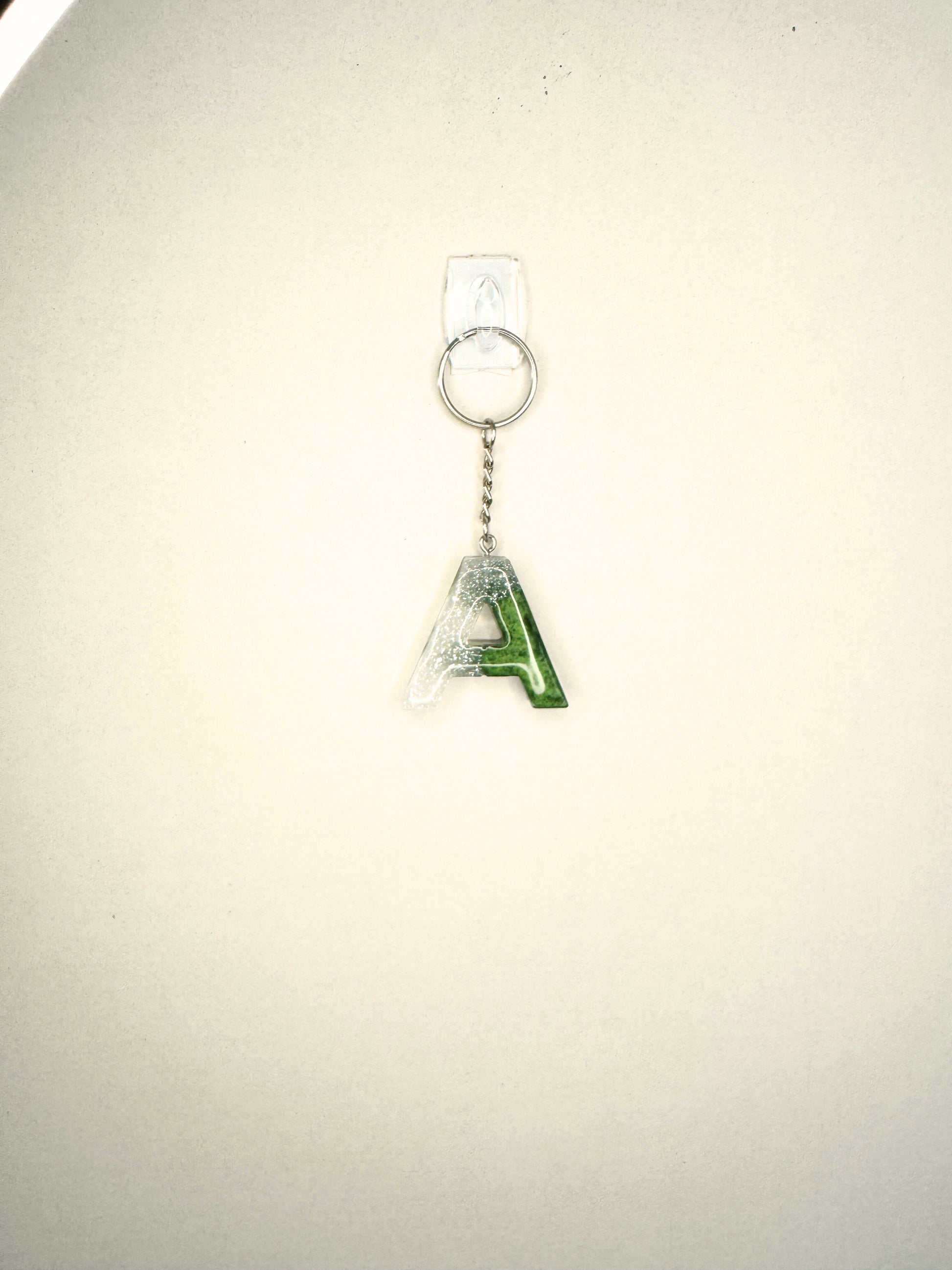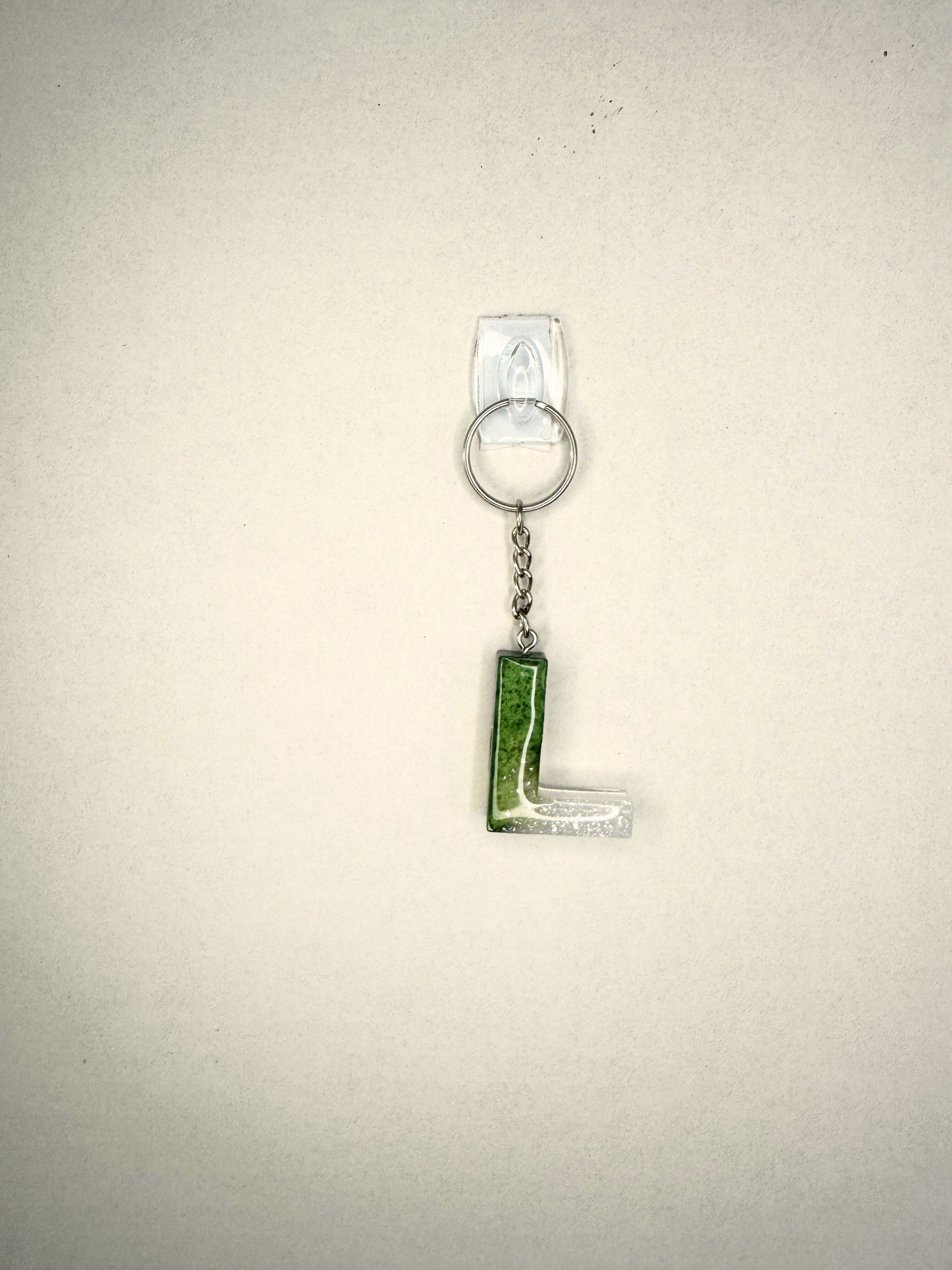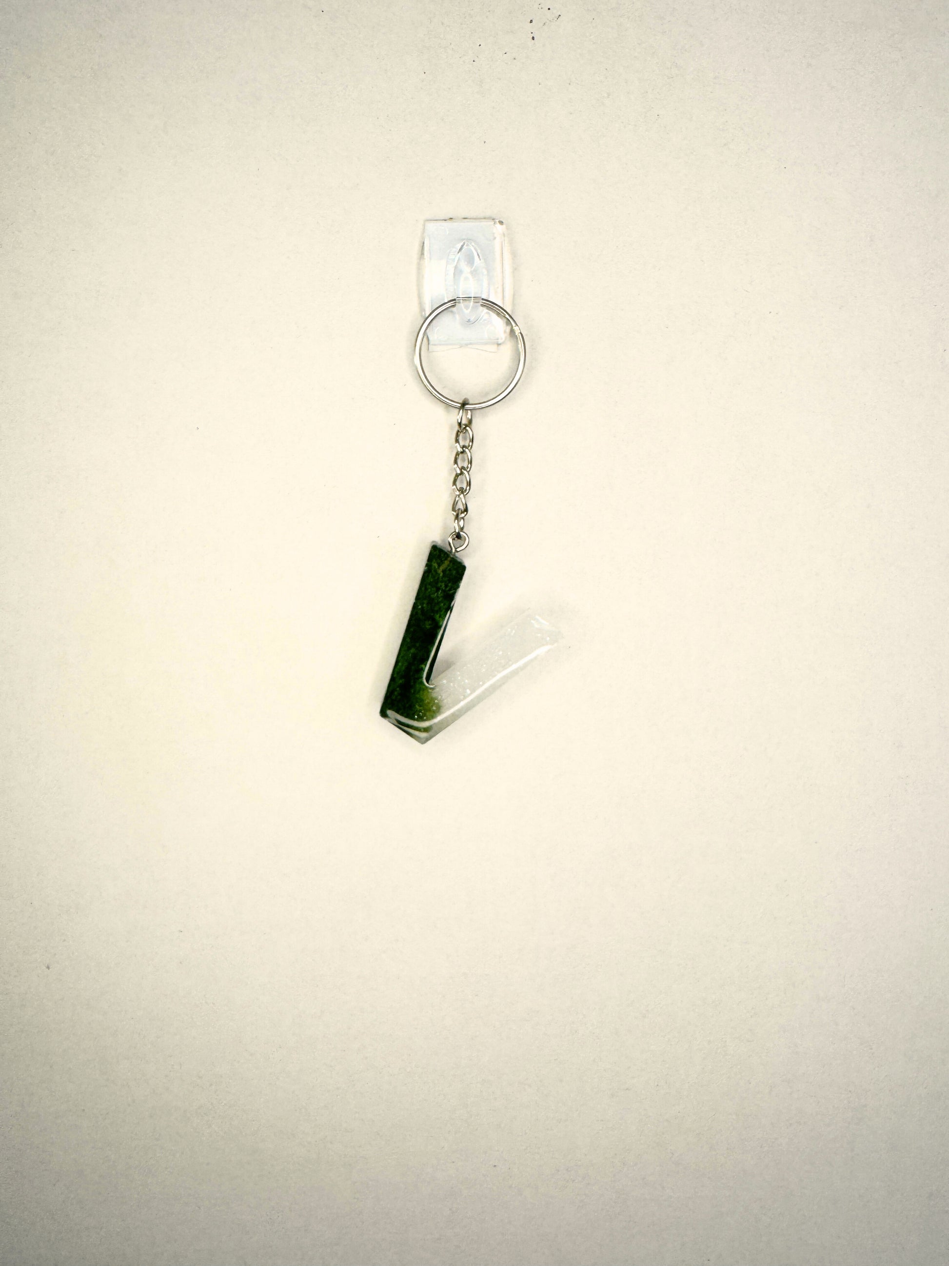 This resin epoxy handmade keychain features a unique dark green and silver color combination. Durable and eye-catching, it adds a touch of style to your keys while ensuring they are easy to find. Each keychain is crafted with care, making it a one-of-a-kind accessory to any set of keys.