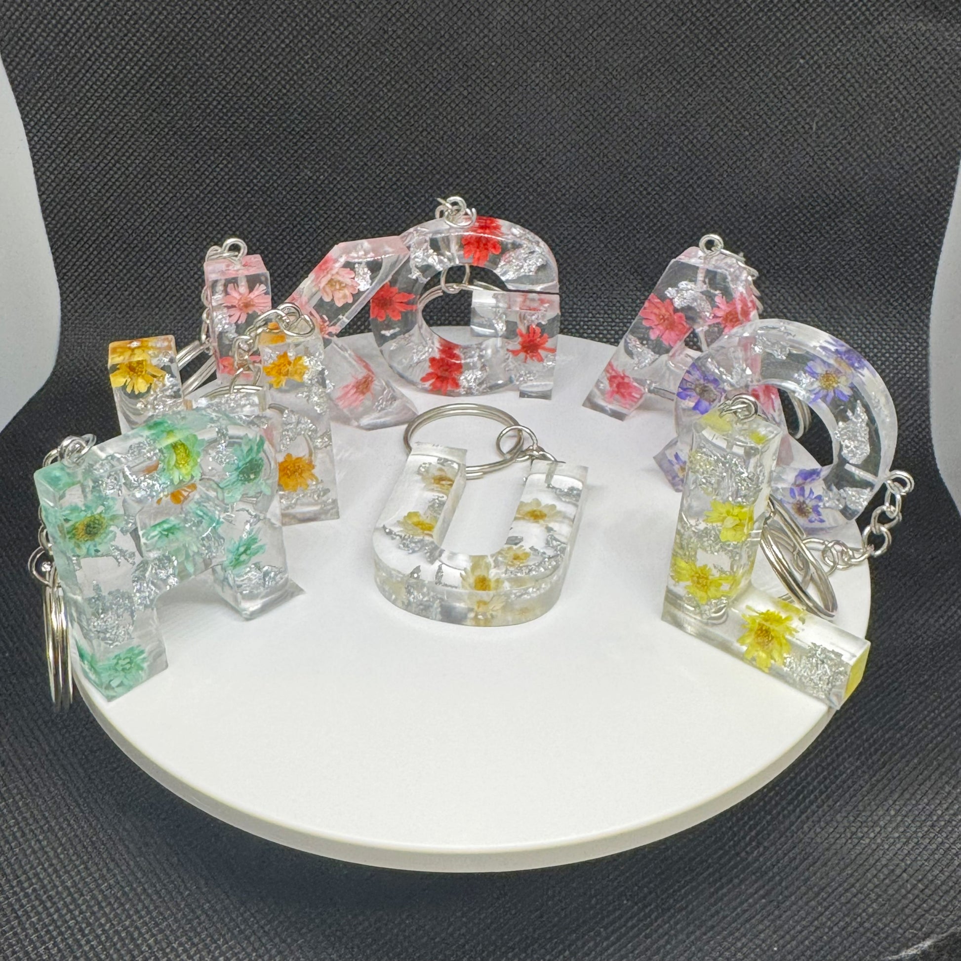 Add a touch of elegance and nature to your daily routine with our Blossom Shine Letter Keychains. Each letter is handcrafted from crystal-clear resin, delicately filled with real dried flowers and shimmering silver foil. Featuring a bright, floral design and a sturdy silver keyring, these keychains make a charming personalized gift or accessory for your keys, bags, or backpacks.