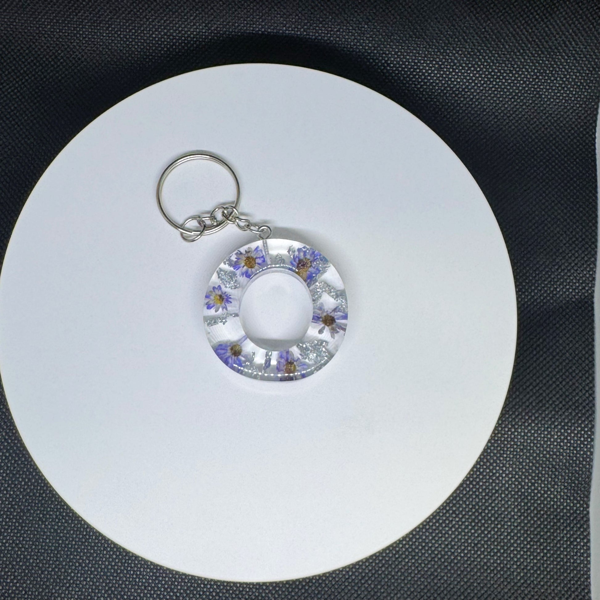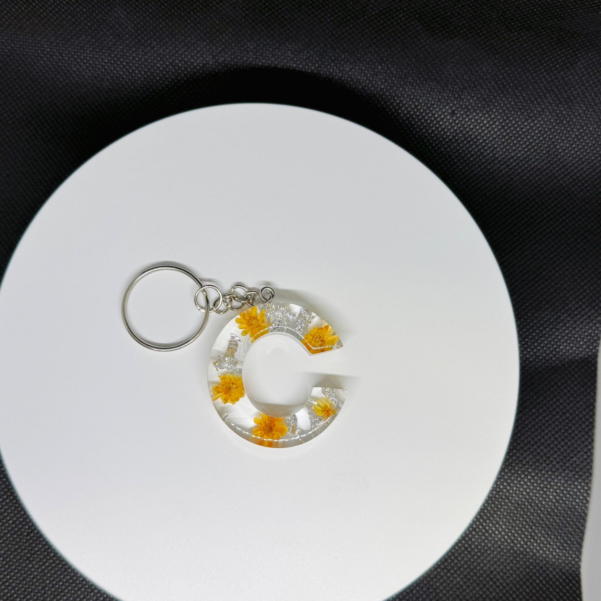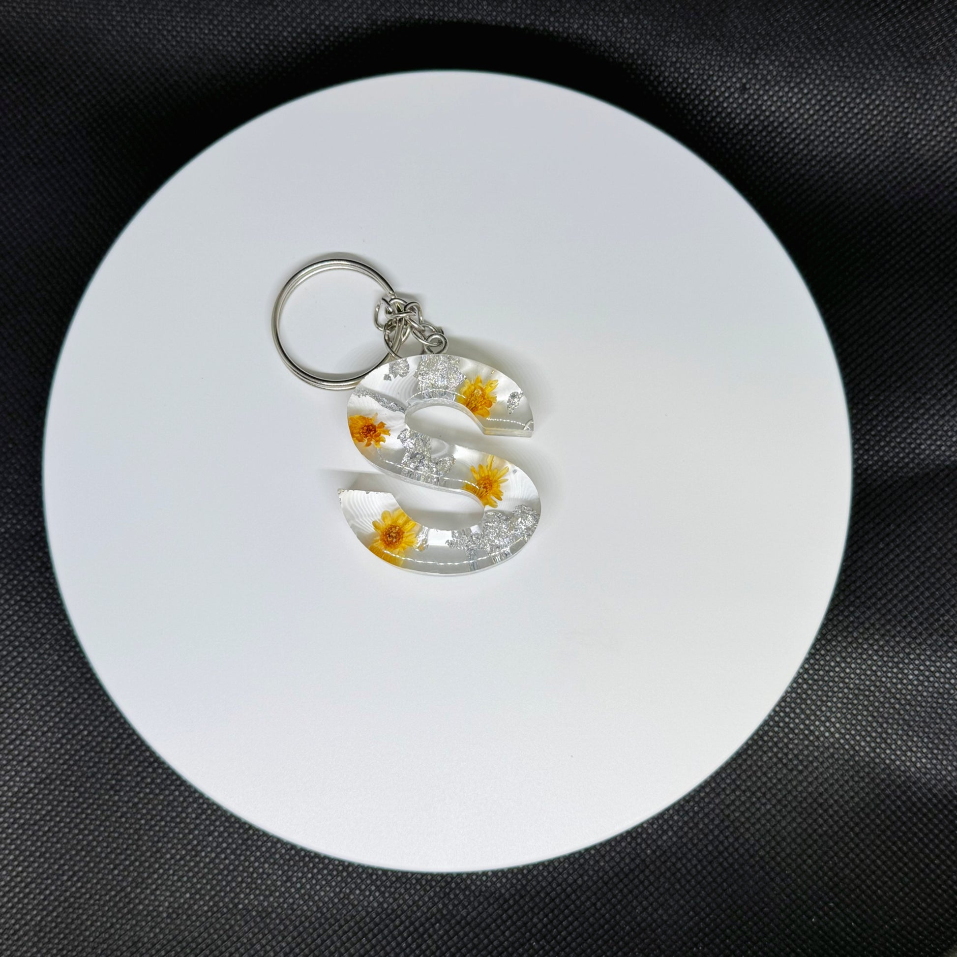 Alphabet letter keychain with flowers and silver foil