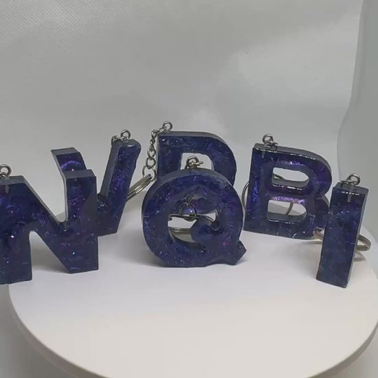 Personalized and handmade, this Midnight Galaxy Letter Keychain features shimmering crushed foil in deep cosmic blue hues, encased in glossy resin. Each keychain is shaped like a bold alphabet letter—perfect for customizing your keys, backpacks, or gifting to friends and loved ones. Lightweight, durable, and uniquely crafted, it’s a stylish way to carry a piece of art everywhere you go.