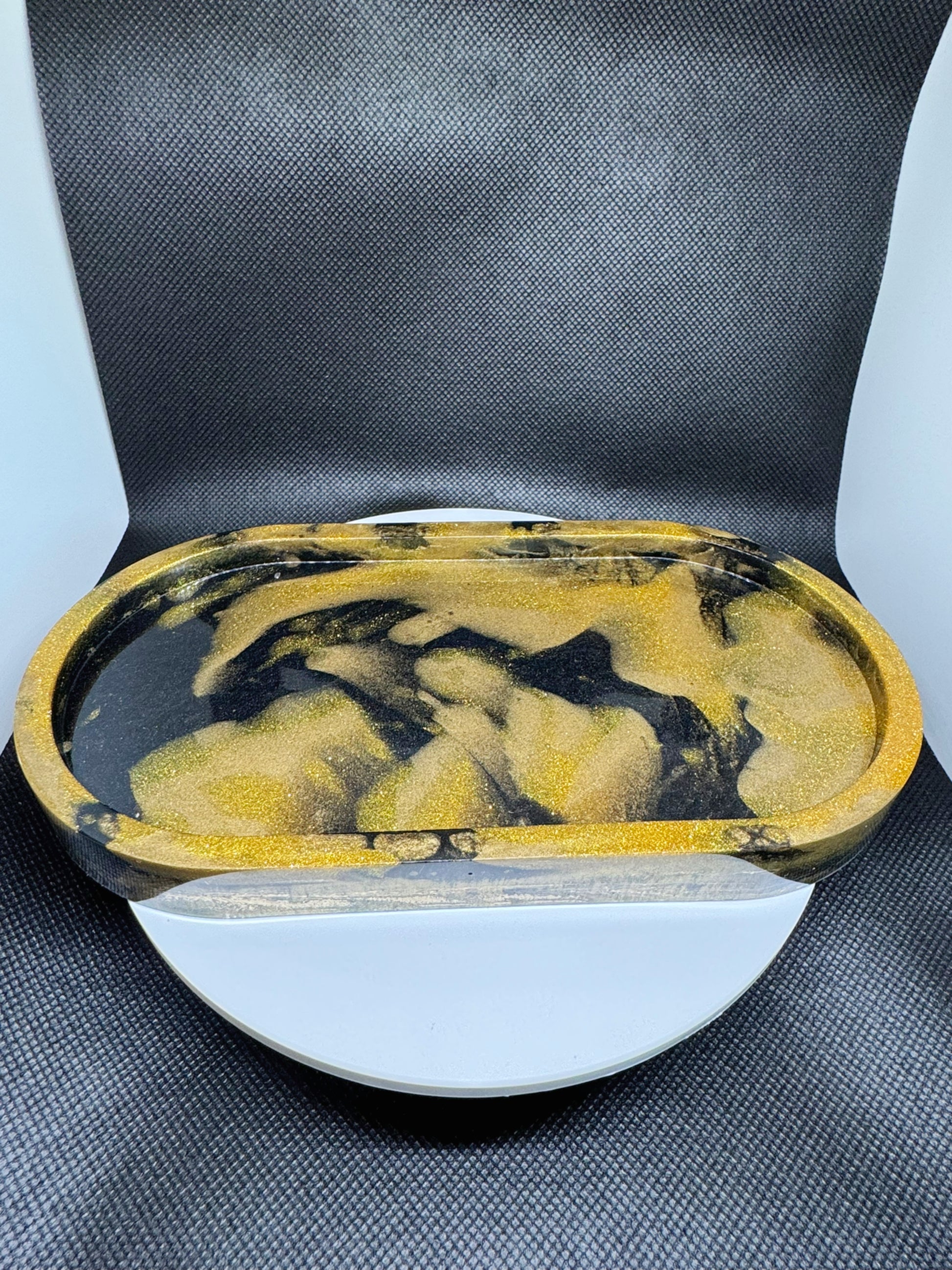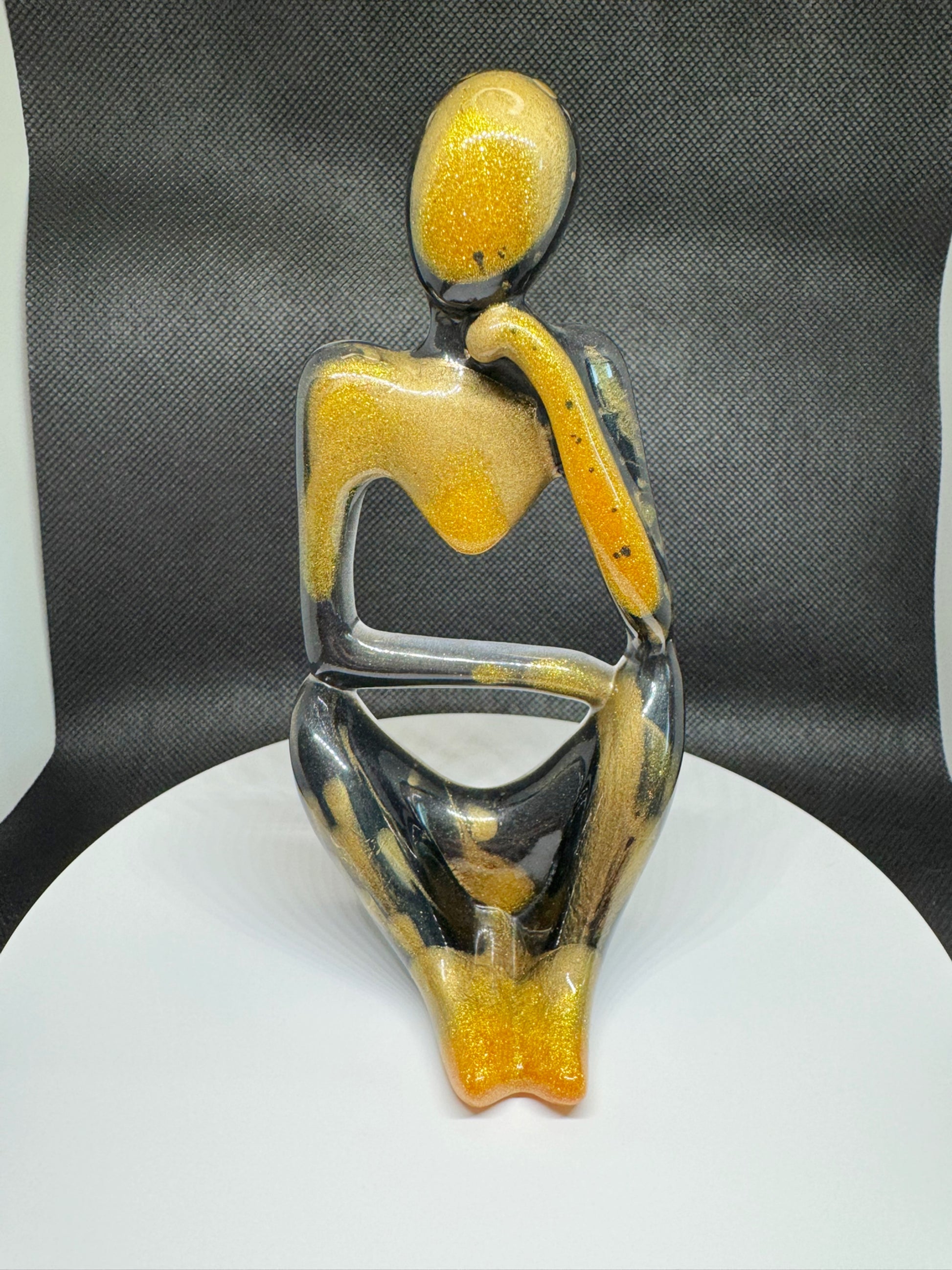 Add a touch of luxury to your daily routine with The Thinker in Gold 🤔. This sleek and sophisticated EbonGold Tray is perfect for organizing jewelry, keys, candles, or perfumes. Hand-poured with a black and gold marbled design, each tray is unique and adds a bold beauty to any setting. Elevate your space with a touch of exclusivity.